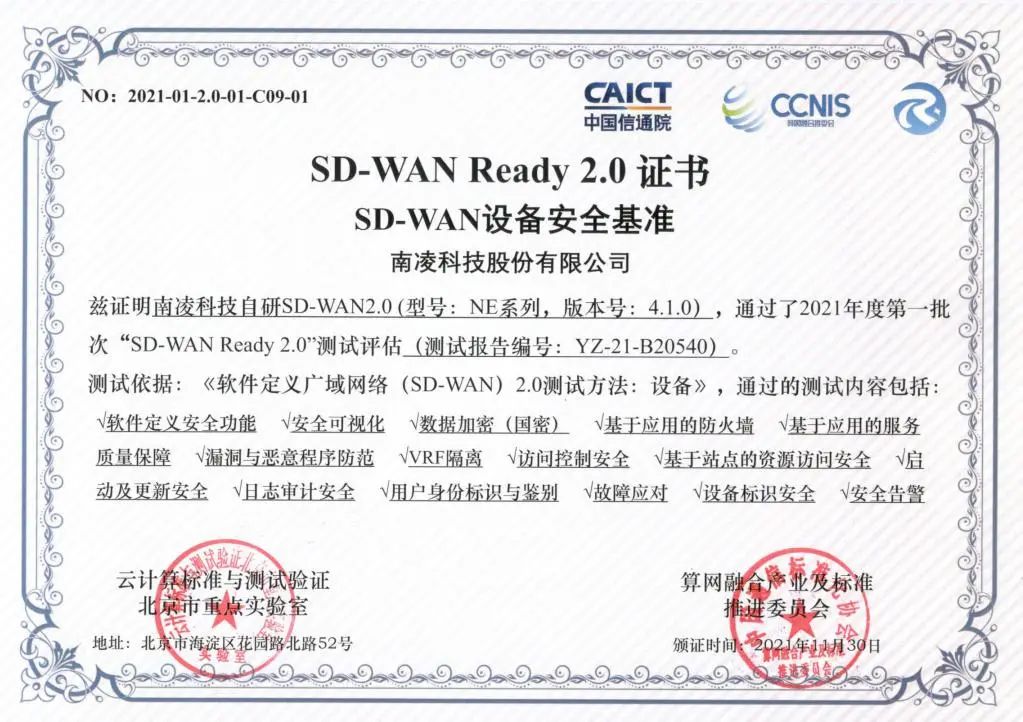 首批通過“SD-WAN Ready 2.0 ”測試,在安全領(lǐng)域達到標(biāo)準(zhǔn)水平。