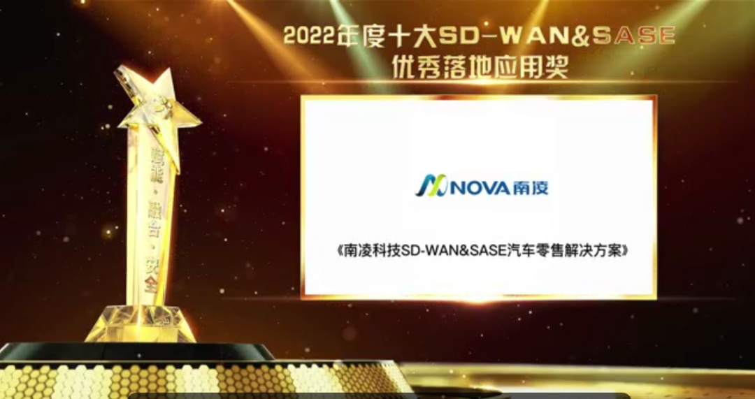“年度十大 SD-WAN&SASE優(yōu)秀落地應用獎”重點表彰2022年度切實推動SD-WAN&SASE技術(shù)行業(yè)落地,并在商業(yè)價值、用戶體驗、客戶服務、應用效益等方面取得顯著成果的優(yōu)秀案例。南凌科技憑借《SD-WAN&SASE汽車零售解決方案》獲此獎項。